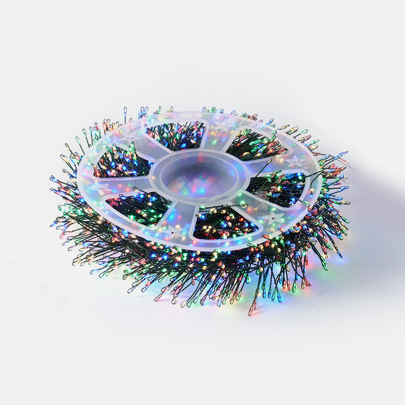 The 1500 LED copper wire light, shaped like firecrackers, is designed for large-scale lighting scenarios such as courtyards, gardens, or shop windows.